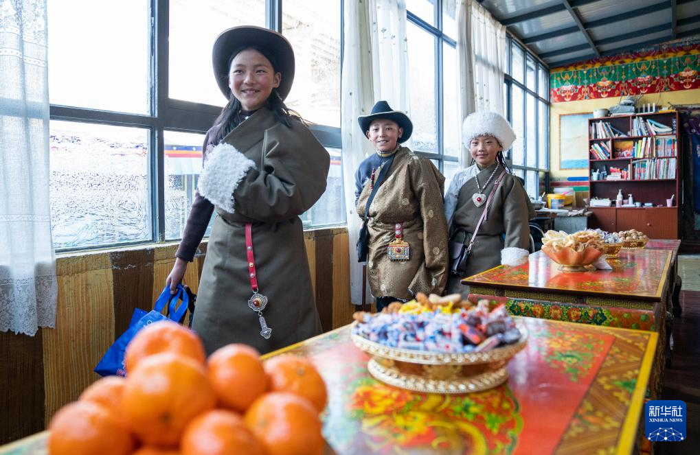 年前数天,斯曲旺姆的七儿子索朗罗达开着自家面包车,从县城买来了切玛盒、糖果、酥油花等年货。儿孙们用丰富多彩的年货将家中装点得满满当当。