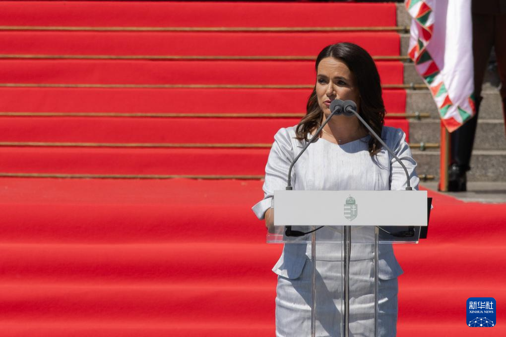 这是2022年5月14日诺瓦克·卡塔琳在匈牙利首都布达佩斯的国会大厦前发表总统就职演说时的资料照片。