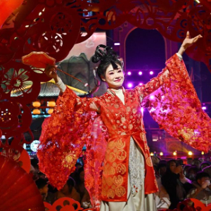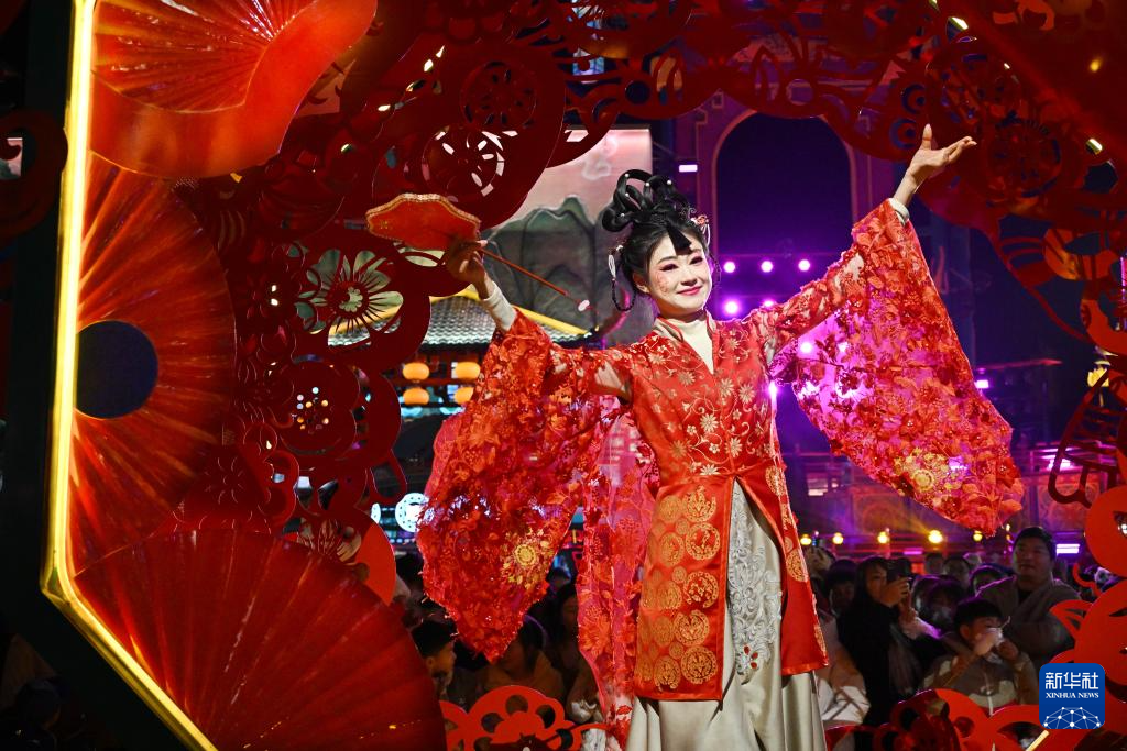 2月10日,演员在山东青岛明月·山海间景区内表演。