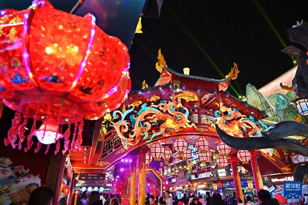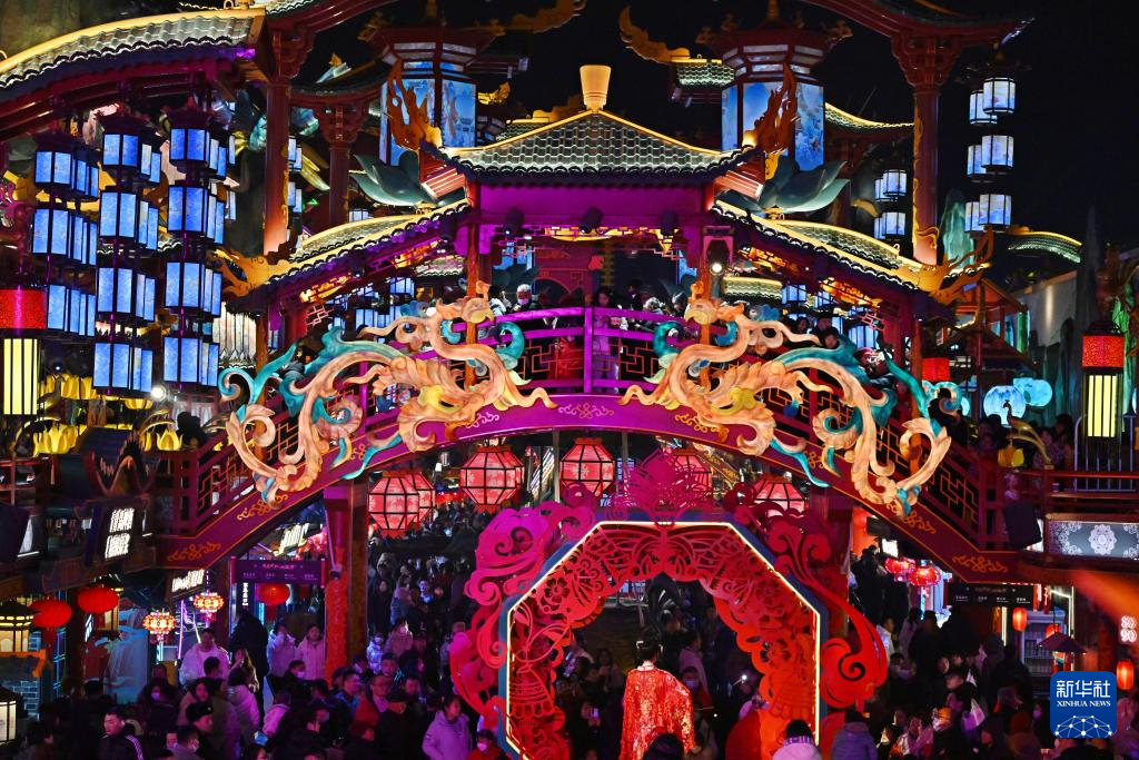 春节期间,位于青岛市城阳区的明月·山海间景区推出“游不夜城 品中国年”系列国潮民俗活动。