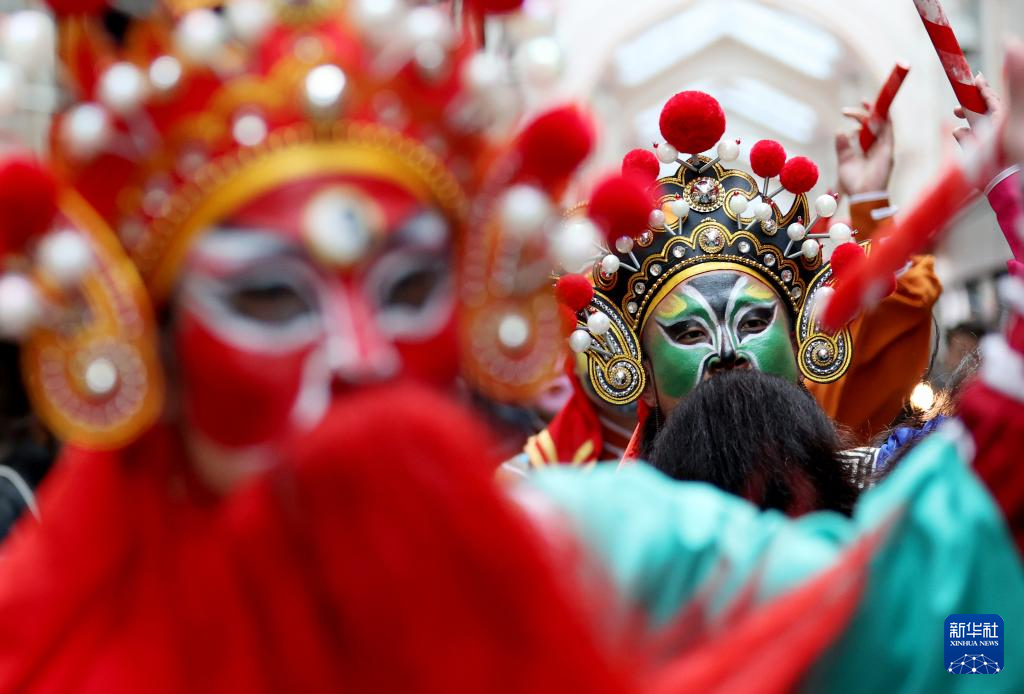当日,来自广东普宁的英歌舞团在拥有两百年历史的伦敦伯灵顿拱廊街演出,庆祝中国农历新年。集戏剧、舞蹈、武术于一体的英歌舞在2006年被列入首批国家级非物质文化遗产名录。