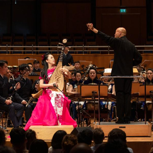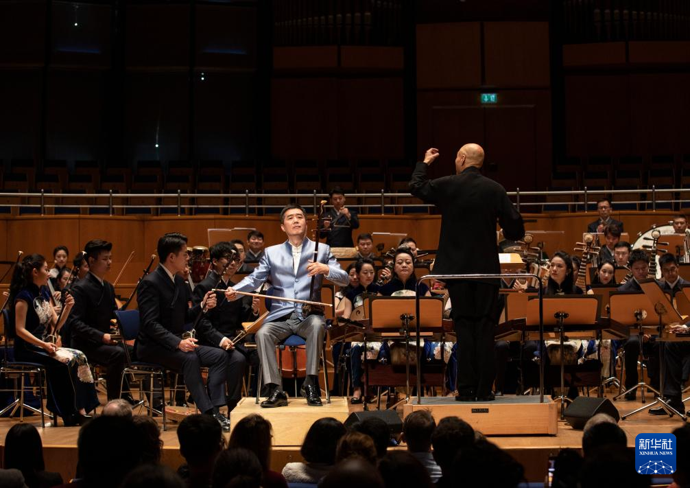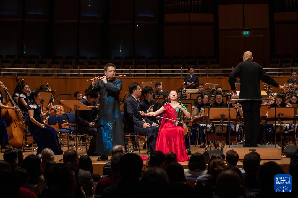 2月10日,在德国杜塞尔多夫市音乐厅,中央民族乐团团长赵聪与乐团共同演奏曲目《冬至·福吉天长》。