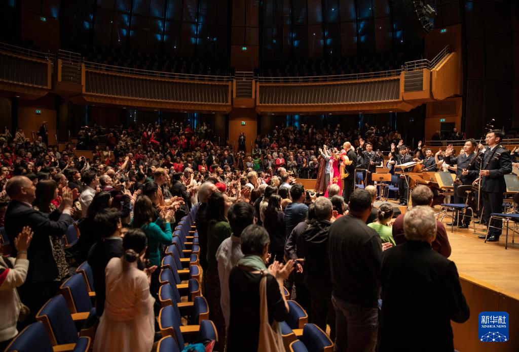 当日,“中国春节民族音乐会”在德国杜塞尔多夫市音乐厅举行,这是中国中央民族乐团《天地永乐·中国节》春节欧洲巡演龙年的第一场演出。琵琶、胡琴、二胡、笛子奏响在莱茵河畔,现场观众沉醉在中国民乐中。