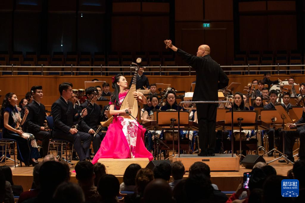 2月10日,在德国杜塞尔多夫市音乐厅,中央民族乐团的音乐家演奏曲目《端午·龙船》。