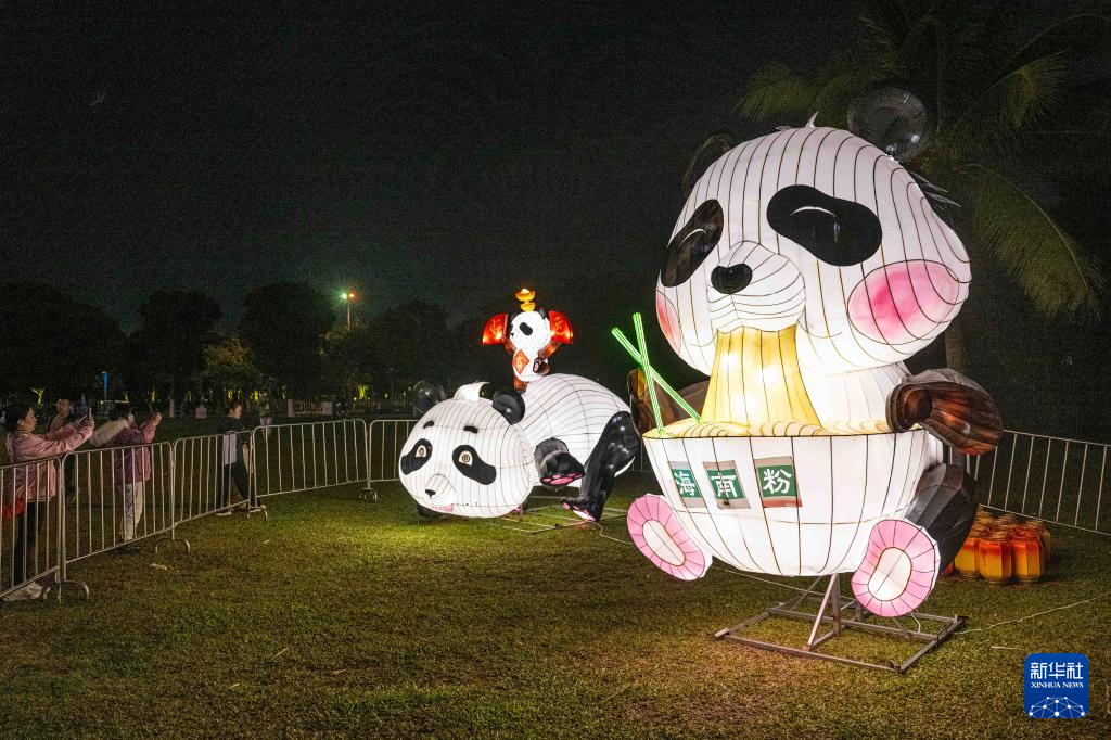 2月10日,游客在海口市万绿园观看万春会花灯。