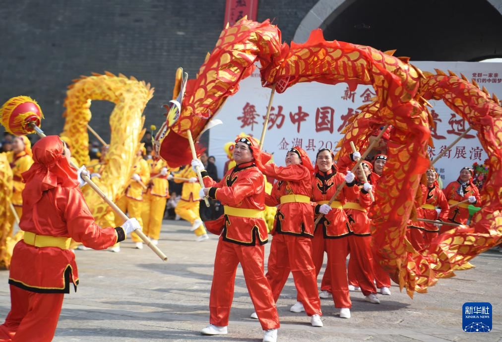 2月11日,民间艺人在江苏省淮安市金湖县尧帝古城表演舞龙。
