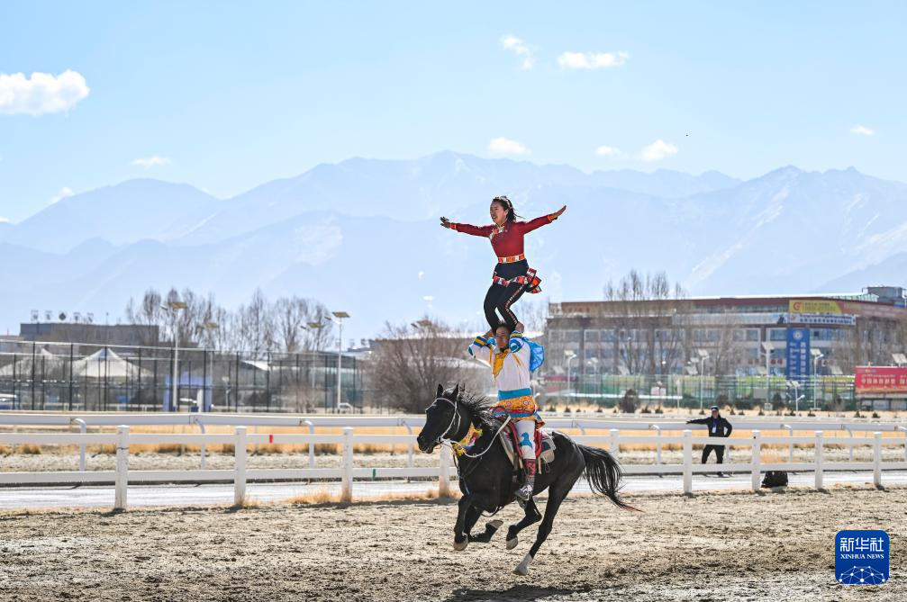 每年藏历新年初三,举办马术表演是拉萨庆祝新年的传统,深受广大群众喜爱。当日,主题为“体育大拜年,健康迎新春”的民族传统马术表演暨民族赛马活动在拉萨赛马场举行。