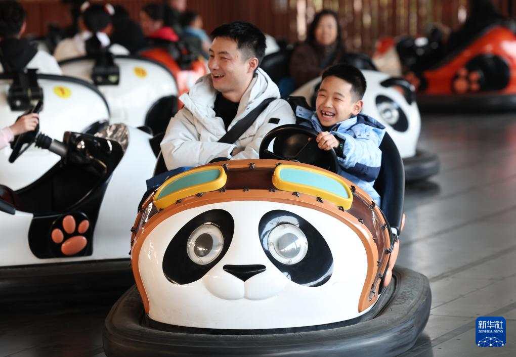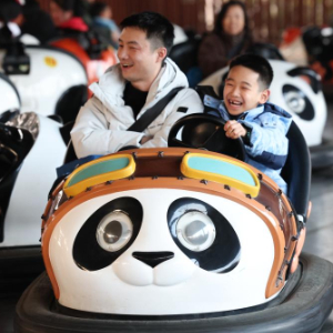 2月11日,游客在湖北省襄阳市华侨城奇幻度假区玩碰碰车。