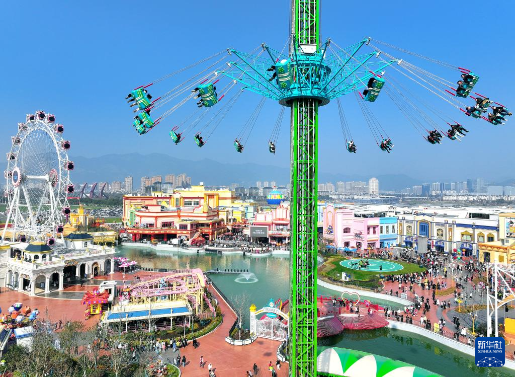 2月12日,游客在浙江省临海市一游乐场游玩。