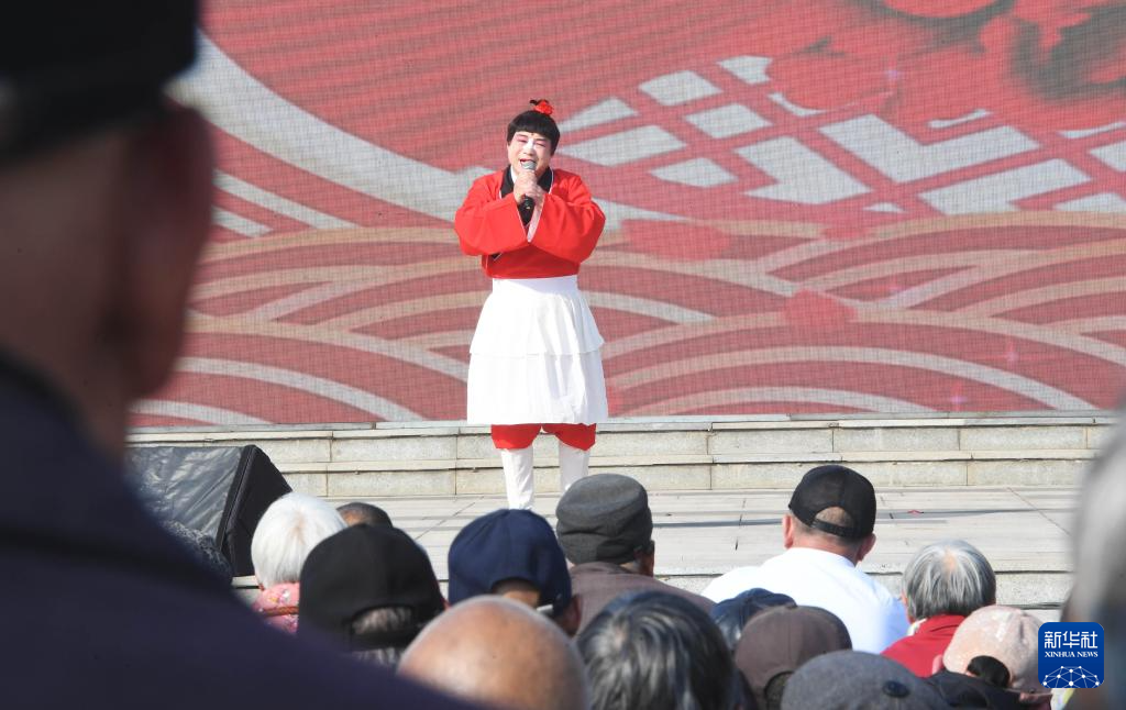 2月12日,市民在郑州市高新区庙会观看豫剧表演。
