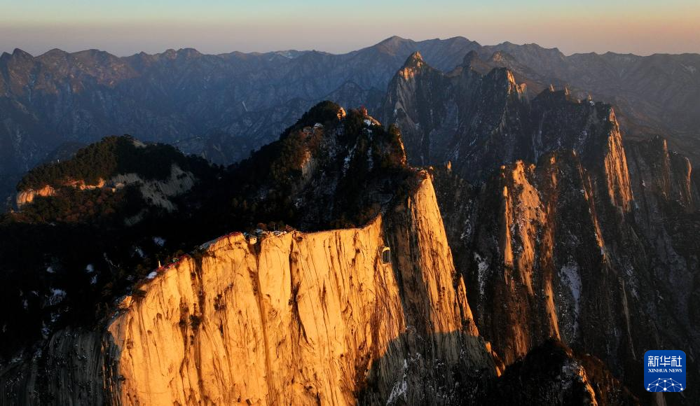 日落时分的华山群峰(2月12日摄,无人机照片)。