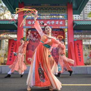 2月12日,在位于海南省海口市的第十六届万春会分会场——海瑞文化公园春节系列活动中拍摄的舞蹈演艺现场。