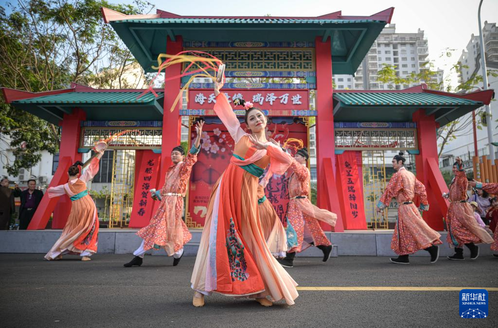 这是2月12日在位于海南省海口市的第十六届万春会分会场——海瑞文化公园春节系列活动中拍摄的舞蹈表演。