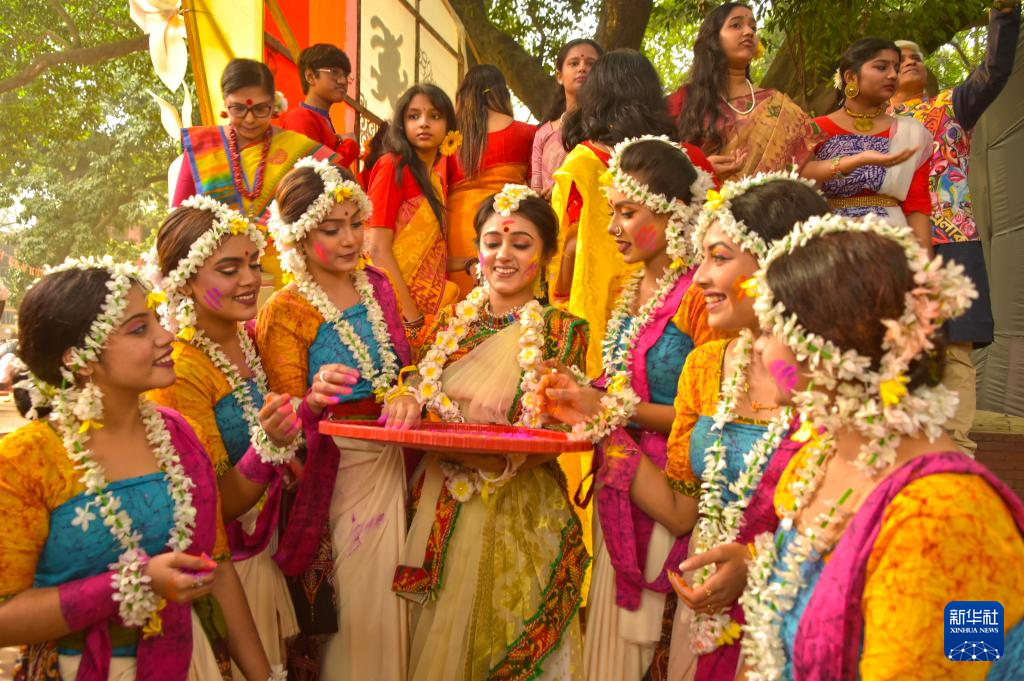 孟加拉历第11月的第一天是“开春节”,孟加拉国的女性会在这一天盛装打扮、佩戴鲜花饰品,参加庆祝活动,迎接春天的开始。
