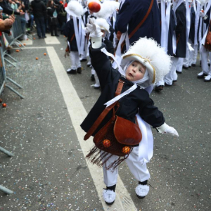 当日是2024年比利时班什狂欢节的最后一天,也是活动最高潮的部分。班什当地居民打扮成“憨人”“水手”“农夫”“小丑”等形象,和游客一起参与狂欢。“憨人”是吉祥与快乐的代言人,也是班什狂欢节最具标志性的形象。