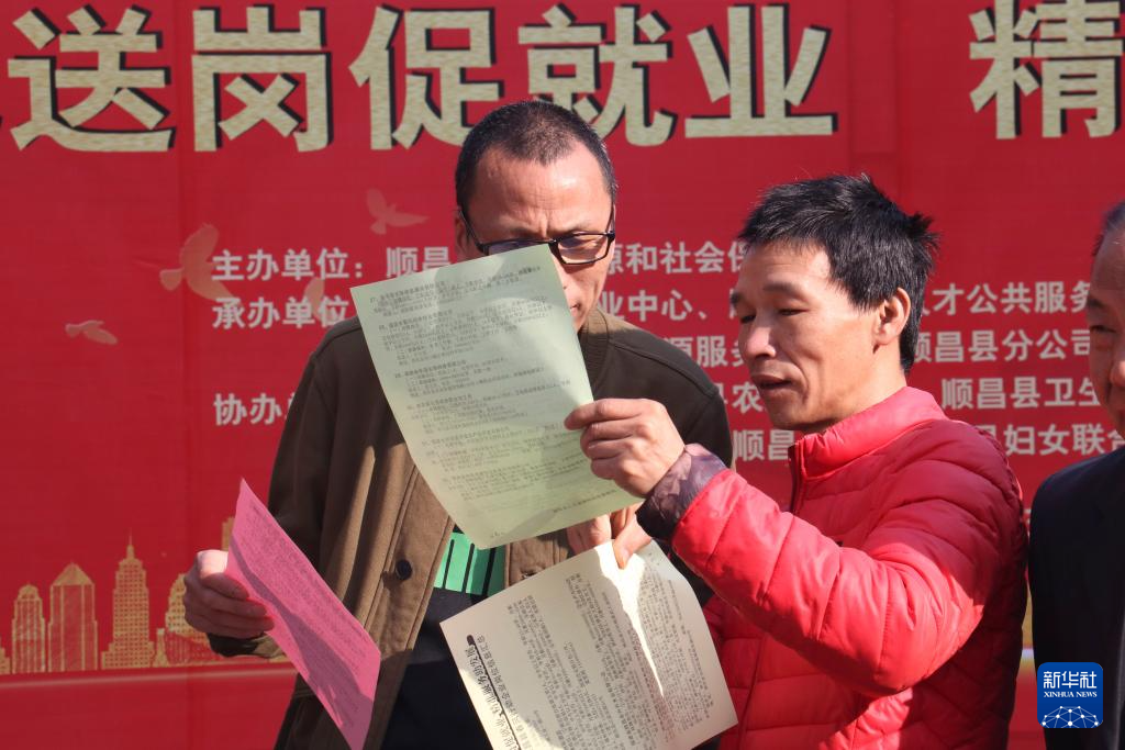 2月14日,应聘者在福建省南平市顺昌县举办的2024年春风行动专场招聘会现场了解就业信息。