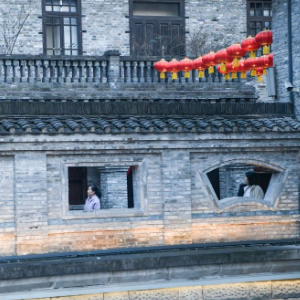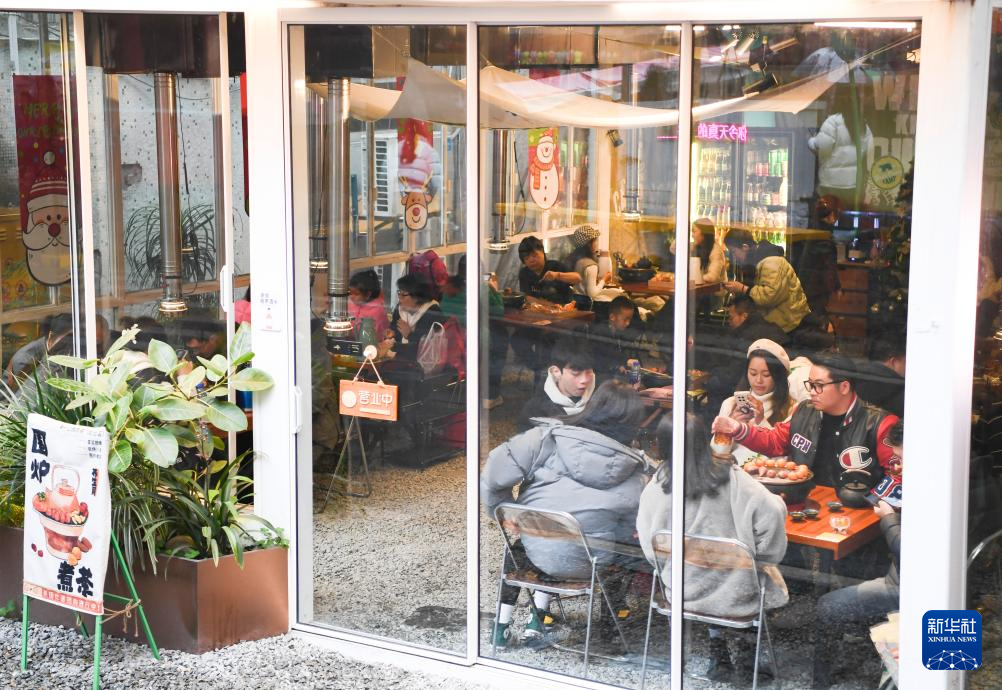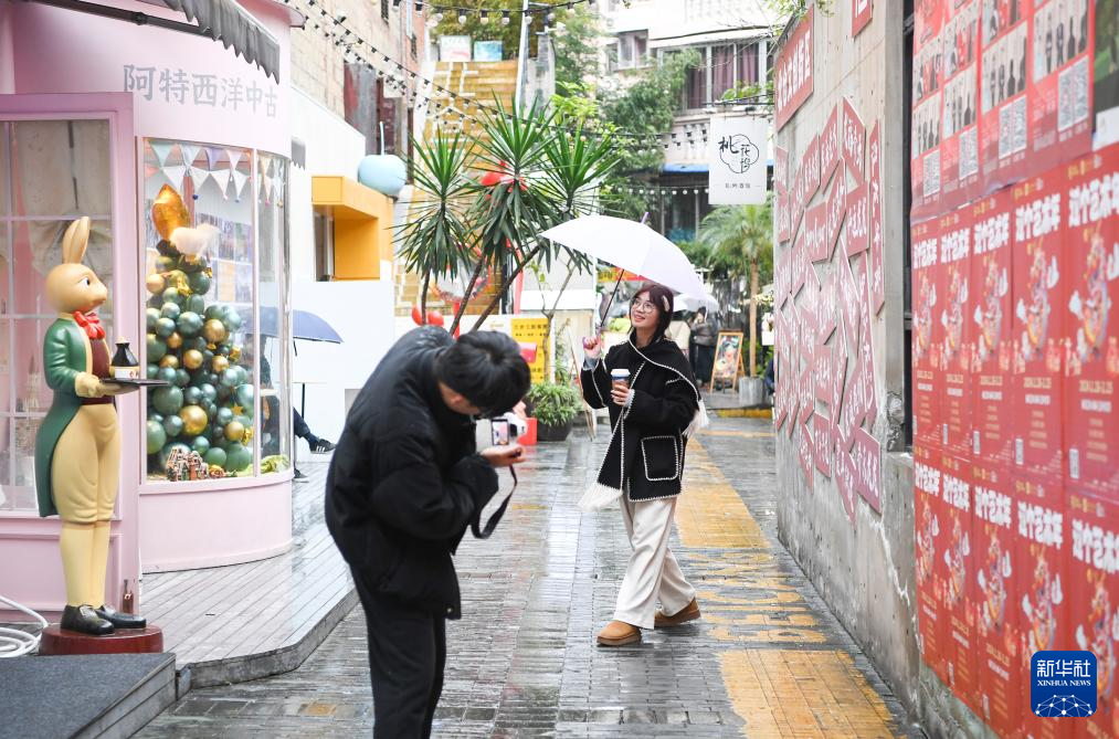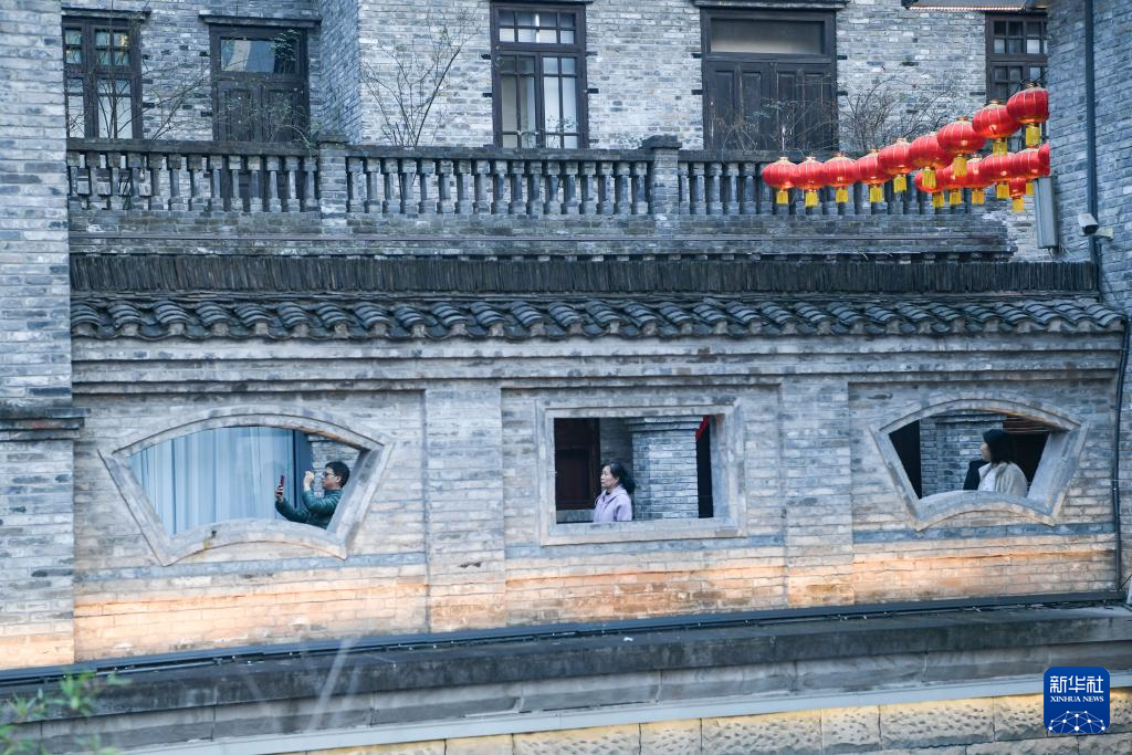 2月15日,游客在重庆市江北区北仓文创街区休闲。
