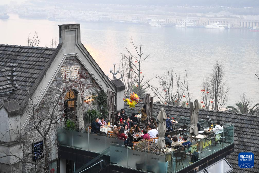 2月14日,游客在重庆市南岸区龙门浩老街休闲。
