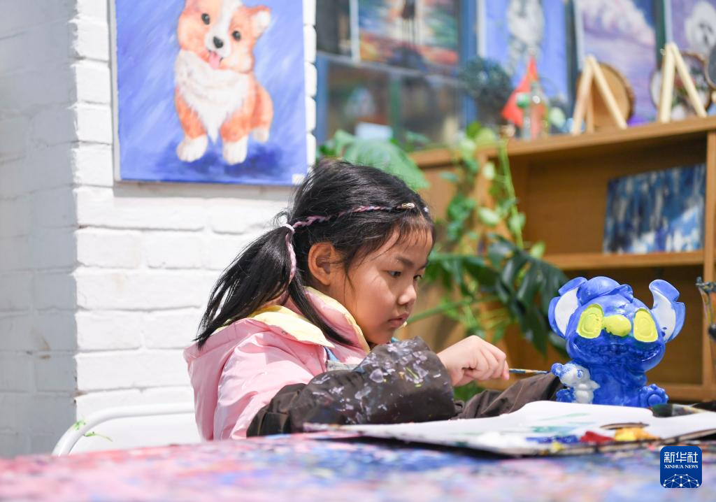 2月15日,小朋友在重庆市江北区北仓文创街区体验自制文创产品。