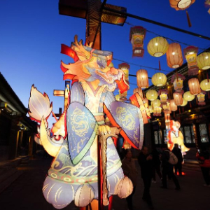 春节期间,在山西省太原市晋源区太原古县城举办的“锦绣太原中国年·凤舞龙城花灯会”上,各类花灯流光溢彩、璀璨夺目,吸引众多游人前来观赏。