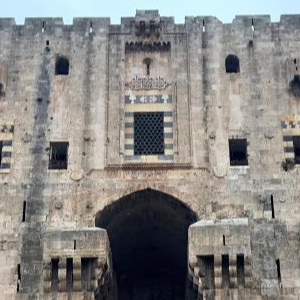 这是1月26日拍摄的叙利亚阿勒颇城堡入口处。