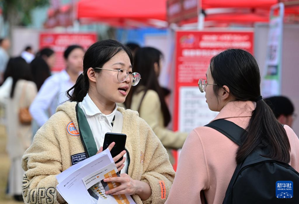 2月19日,求职者在云南省红河哈尼族彝族自治州蒙自市2024年“春风行动”专场招聘会上与用人单位代表沟通。