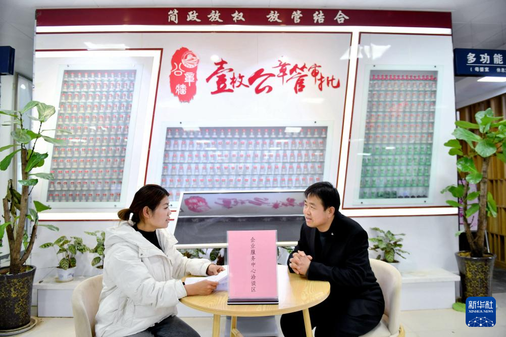 2月19日,市民在邯郸市肥乡区企业服务中心办理业务。