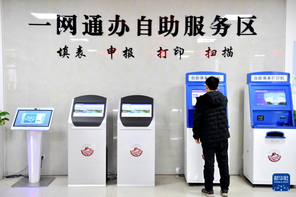 2月19日,市民在邯郸市肥乡区政务服务中心自助服务专区办理业务。