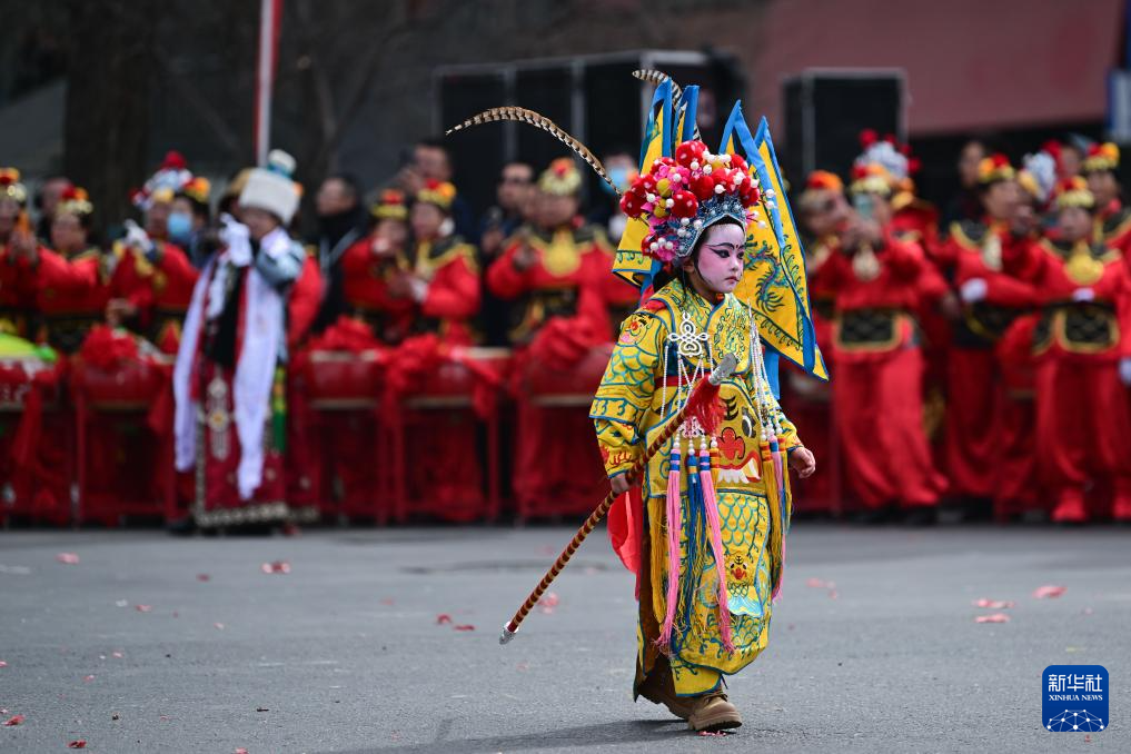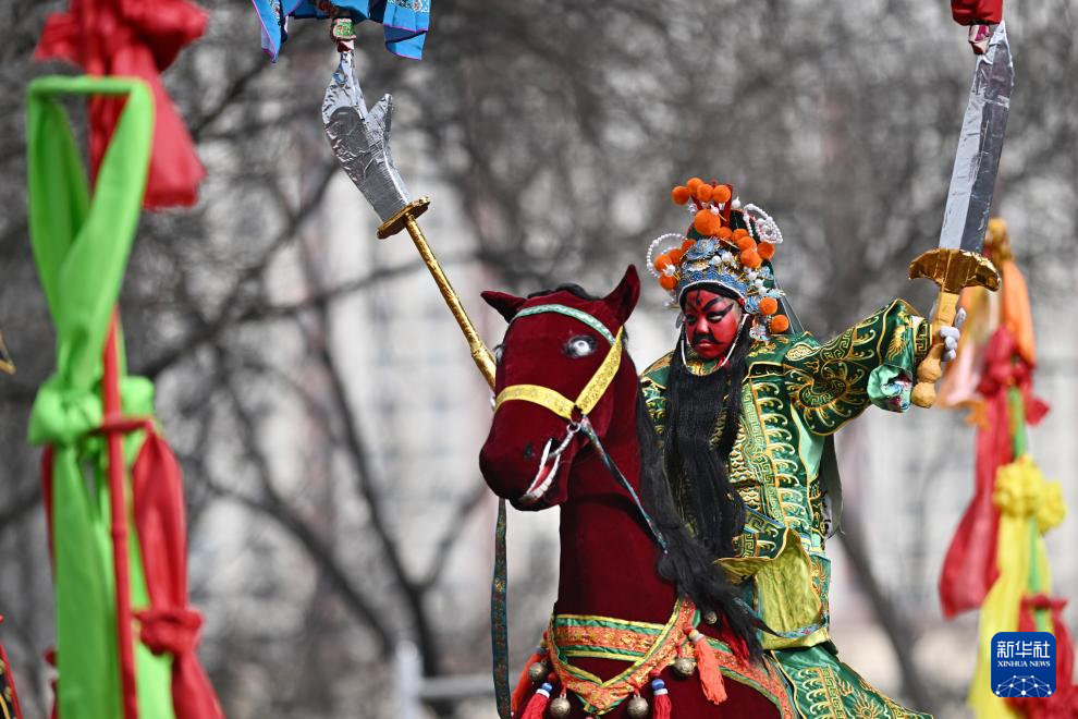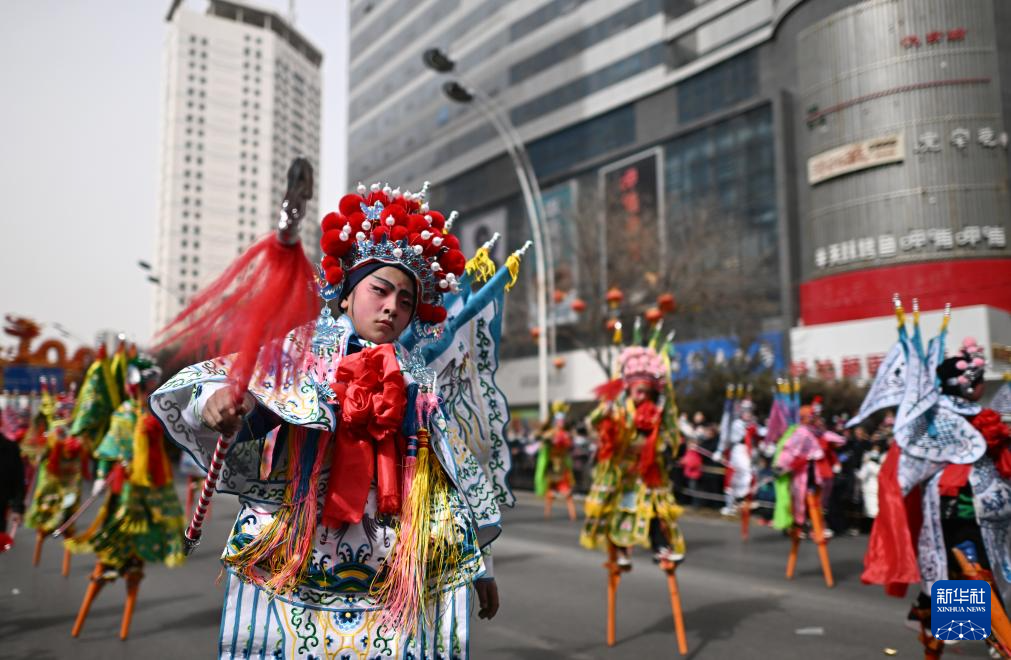 2月19日,在青海省西宁市,演员在社火巡游活动中表演。