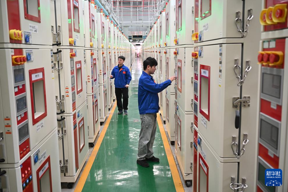 2月19日,宁德新能先锋检测科技有限公司工作人员在电芯实验室查看设备运行情况。