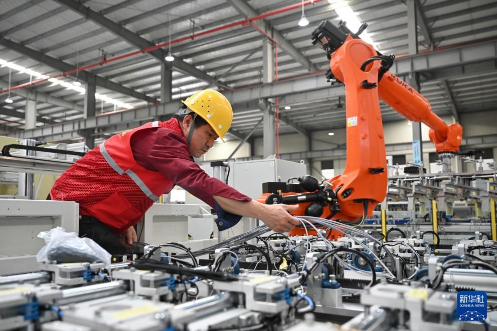 2月19日,宁德思客琦智能装备有限公司工作人员在调试机器人自动化设备。