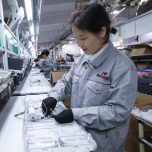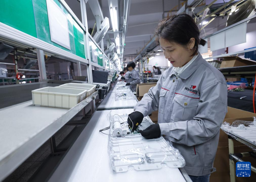 2月19日,工人在位于浙江金华市金义新区的浙江好易点科技股份有限公司车间内组装智能晾衣机。据介绍,该公司已形成年产智能晾衣机100万套生产能力。
