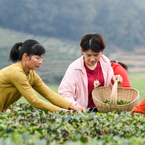 当日是雨水节气,广西兴业县山心镇蓬塘村茶农紧抓农时,采制春茶。近年来,兴业县大力发展茶产业,全县茶园面积2万多亩,年产值约1.8亿元。