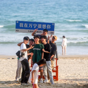 2月19日,游客在海南万宁石梅湾海滩拍照。