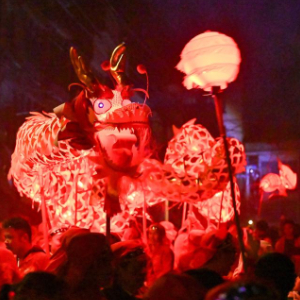 元宵佳节临近,人们进行传统舞龙表演,热热闹闹迎元宵。