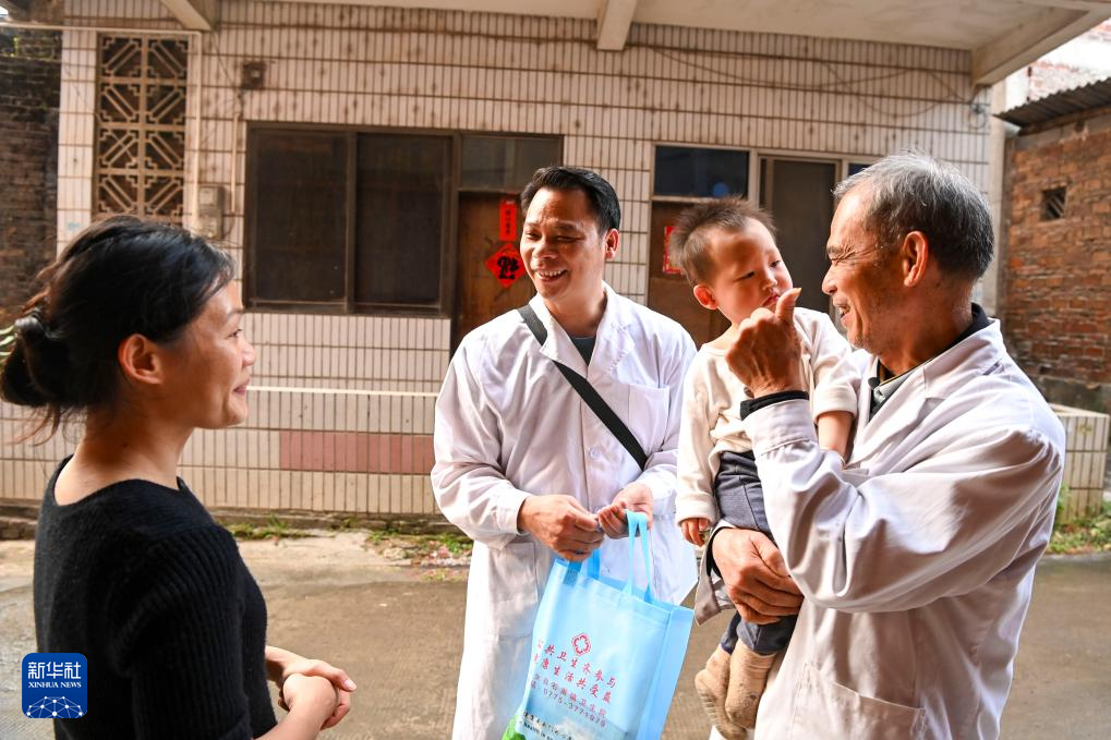 在广西兴业县石南镇环江村,村医梁柱明和儿子梁德和接力扎根乡村,守护着村民的健康。
