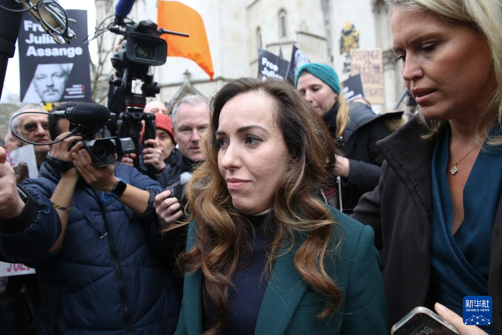 2月20日,在位于伦敦的英国高等法院外,阿桑奇的妻子斯特拉(中)参加集会活动。