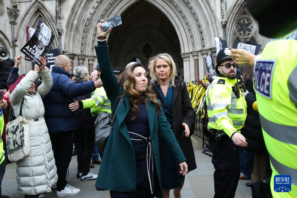 2月20日,人们在位于伦敦的英国高等法院外参加集会活动,呼吁阻止将阿桑奇引渡至美国。