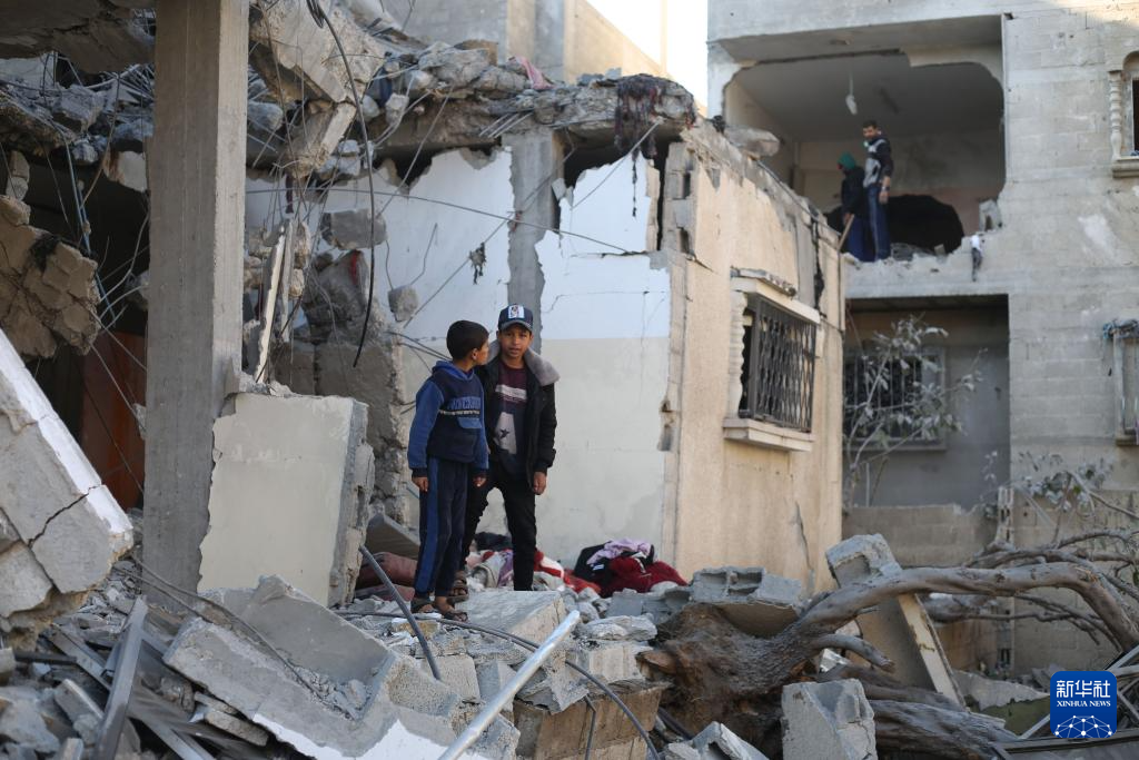 2月21日,在加沙地带南部城市拉法,巴勒斯坦少年经过以军空袭后的废墟。
