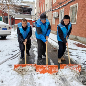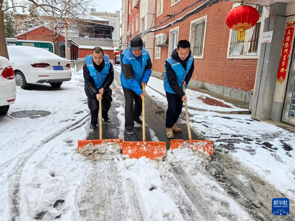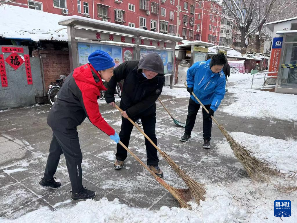 2月21日,北京市海淀区北下关街道中国农业科学院社区工作者在除雪。