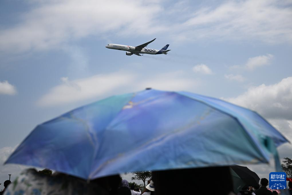 2月22日,一架空客公司A350-1000客机在新加坡航展上做飞行表演。