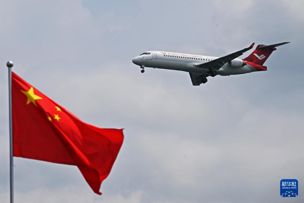2月22日,一架中国商飞公司ARJ21客机在新加坡航展上做飞行表演。