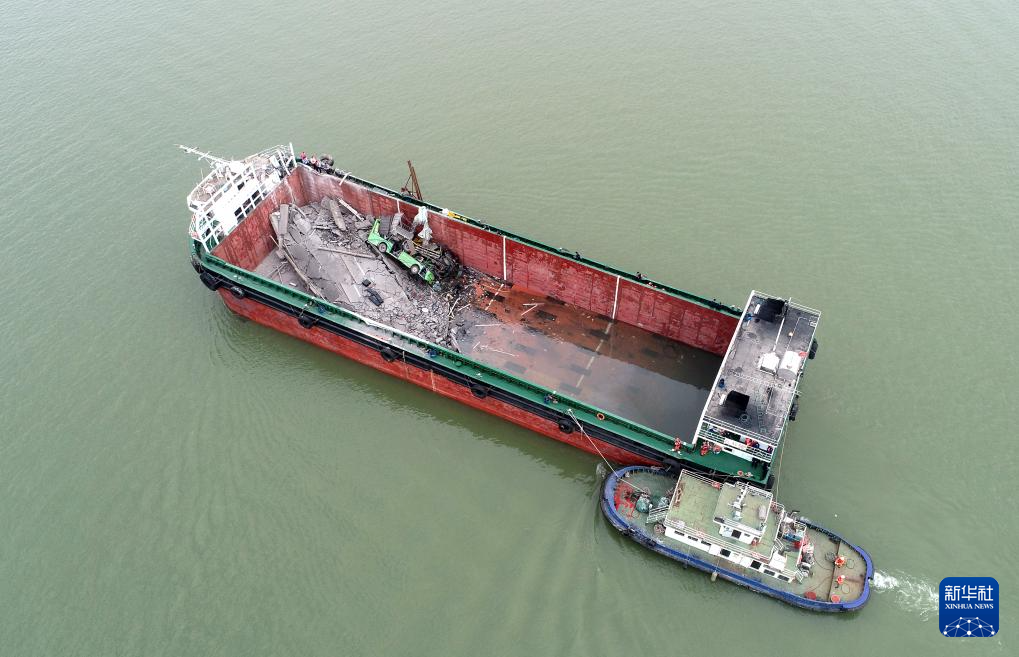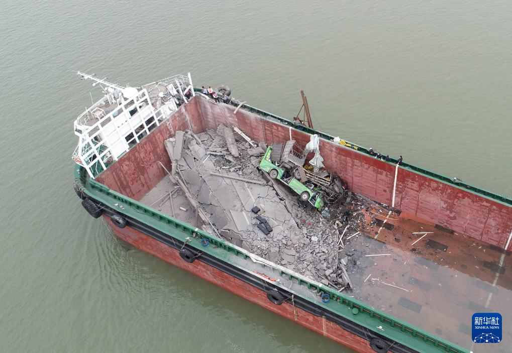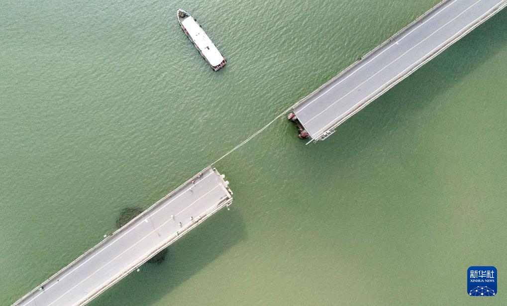 2月22日拍摄的沥心沙大桥事故现场(无人机照片)。