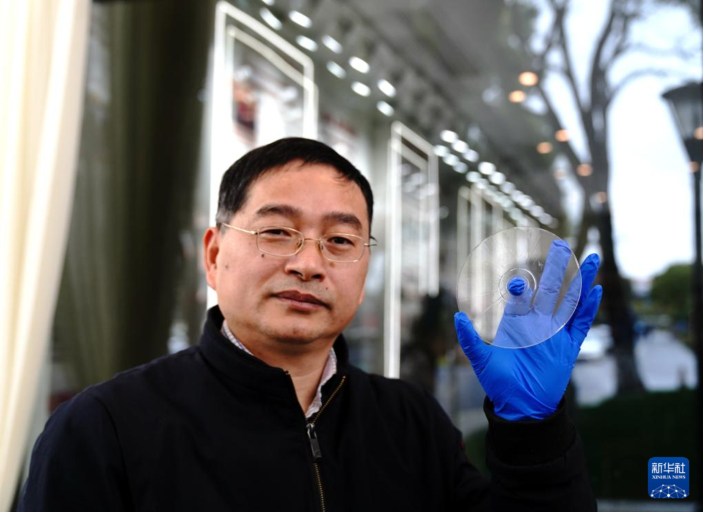 2月21日,上海光机所阮昊研究员展示“超级光盘”。