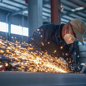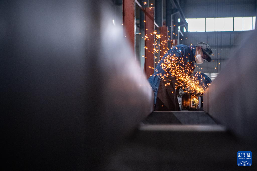 2月22日,在位于重庆市大足区的施密特电梯有限公司生产车间内,工作人员在生产线上进行焊接作业。