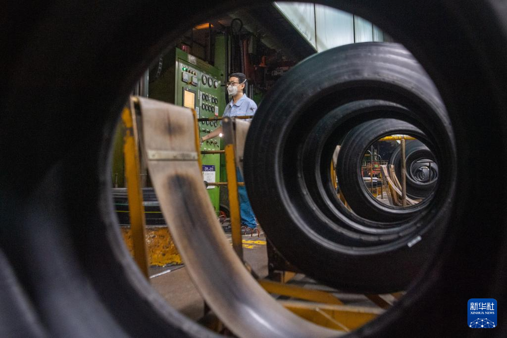 2月22日,在位于重庆市大足区的双钱集团(重庆)轮胎有限公司生产车间内,工作人员进行生产作业。