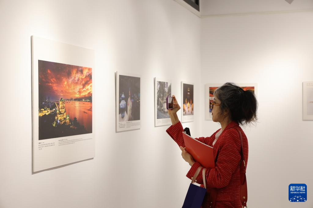 2月21日,在摩洛哥拉巴特,观众参观“江西风景独好”活动图片展。