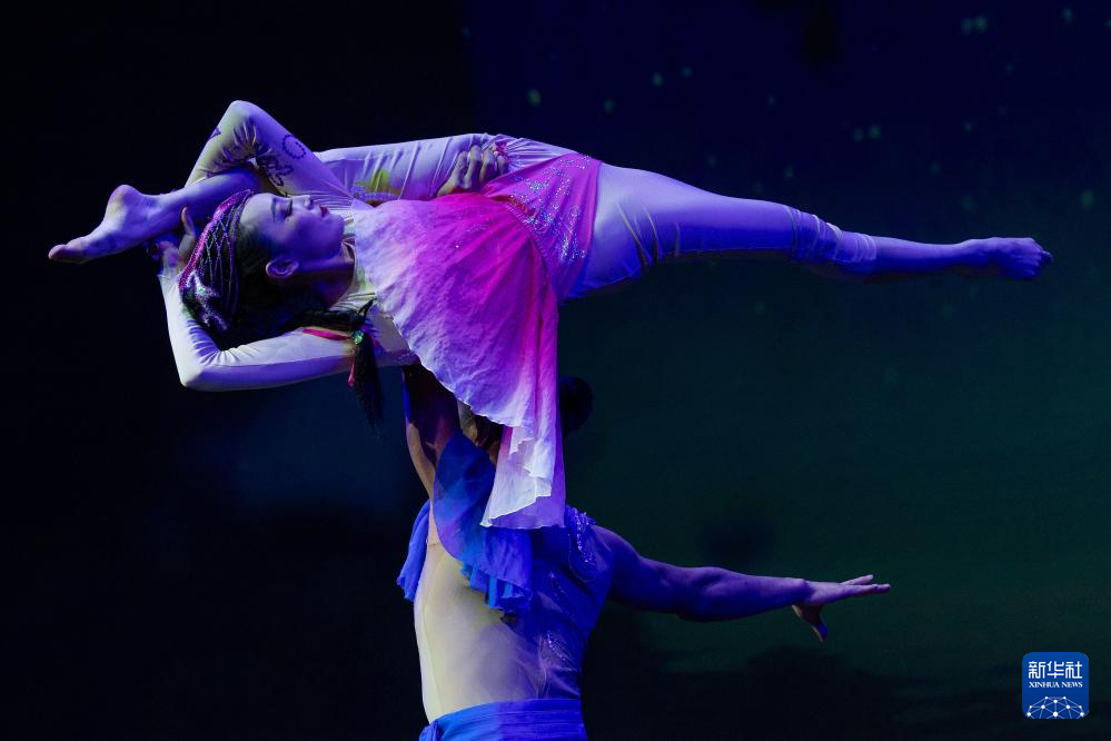 2月22日,演员在荷兰阿姆斯特丹举行的“四海同春”慰侨访演活动上表演杂技《花好月圆》。