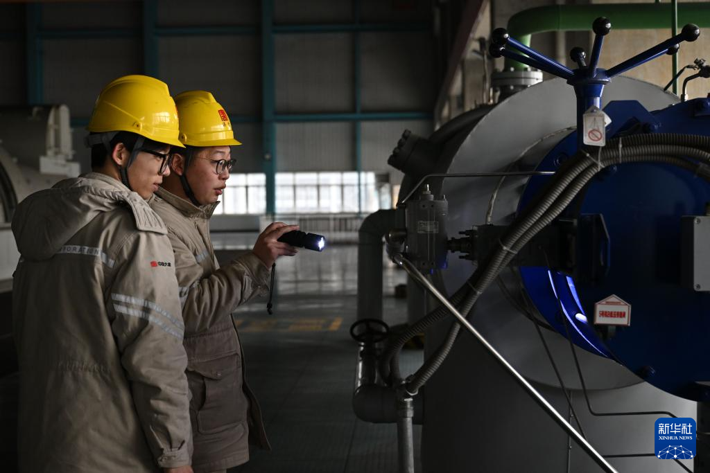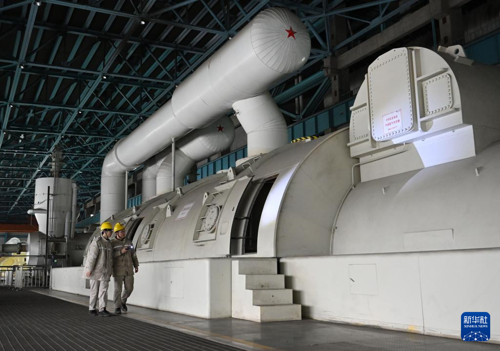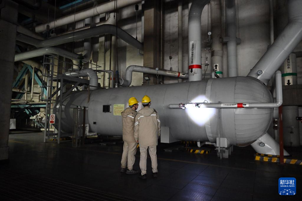 2月22日,在淮南市洛河发电厂,工作人员在巡查发电机平台。