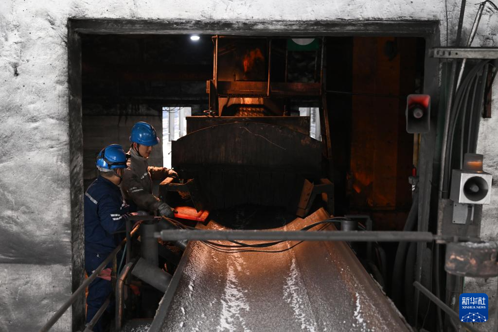 2月22日,在淮南市洛河发电厂,工作人员在检修输煤线路。